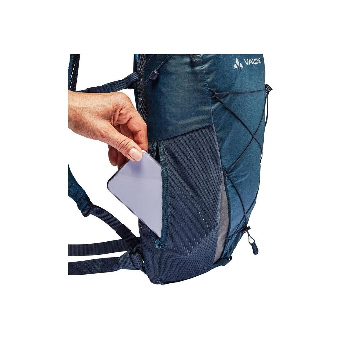 Njutningen av bergen - Uphill 8 väger bara 340 gram; den är minimalistisk och oerhört bekväm. Huvudfacket med en asymmetrisk öppning erbjuder en volym på 8 liter; en platt, elastisk meshficka och en dragkedjeficka på sidan ger tillgång till din telefon eller snacks utan att behöva ta av ryggsäcken. Den multifunktionella snörningen framtill har tre funktioner: förvaring av en jacka när huvudfacket är fullt, komprimering för mindre laster och fäste för vandringsstavar. För att säkerställa god ventilation har vi integrerat 3D-mesh på ryggen och axelremmarna. Reflekterande element, en port för vätskesystem och integrerat regnskydd kompletterar funktionerna hos denna mångsidiga ryggsäck. Alla material har en hög återvinningsgrad. Det ultralätta silikoniserade huvudmaterialet i denna lätta ryggsäck tillverkades med hjälp av en certifierad massbalansprocess där pyrolysolja extraheras från uttjänta däck och matas in i en konventionell polyamidproduktionsprocess. Kemisk återvinning minskar koldioxidutsläppen med upp till 60%. VAUDE Green Shape-märket står för miljövänliga, funktionella produkter tillverkade av hållbara och bluesign-certifierade material.