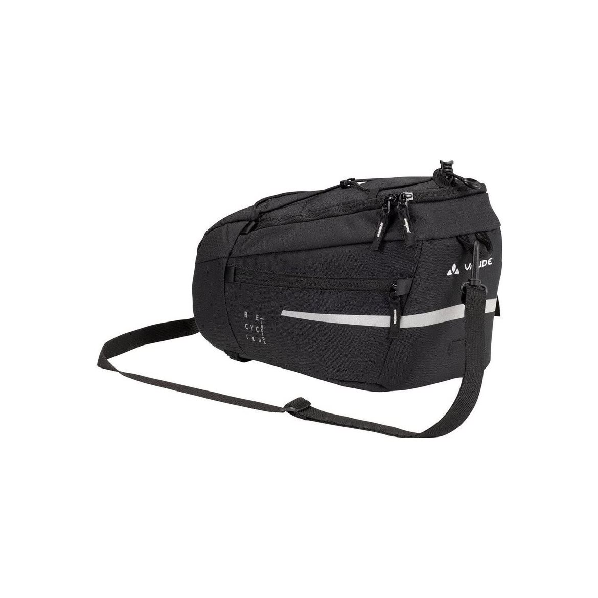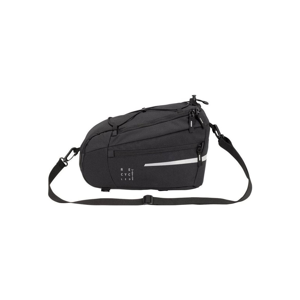 This pannier with a volume of 7 liters can be easily attached or detached with Velcro. The best feature of all it also has the option of mounting an adapter plate for all commonly used systems. An elastic holder on the lid provides additional storage for a jacket or gloves. The bag comes with detachable shoulder strap, reflective elements and a rain cover. The Silkroad M is made primarily from a recycled material and is produced with Eco Finish, an environmentally-friendly water-repellent treatment that doesn't use fluorocarbons (PFC). The VAUDE Green Shape label stands for environmentally-friendly, functional products made from sustainable materials.