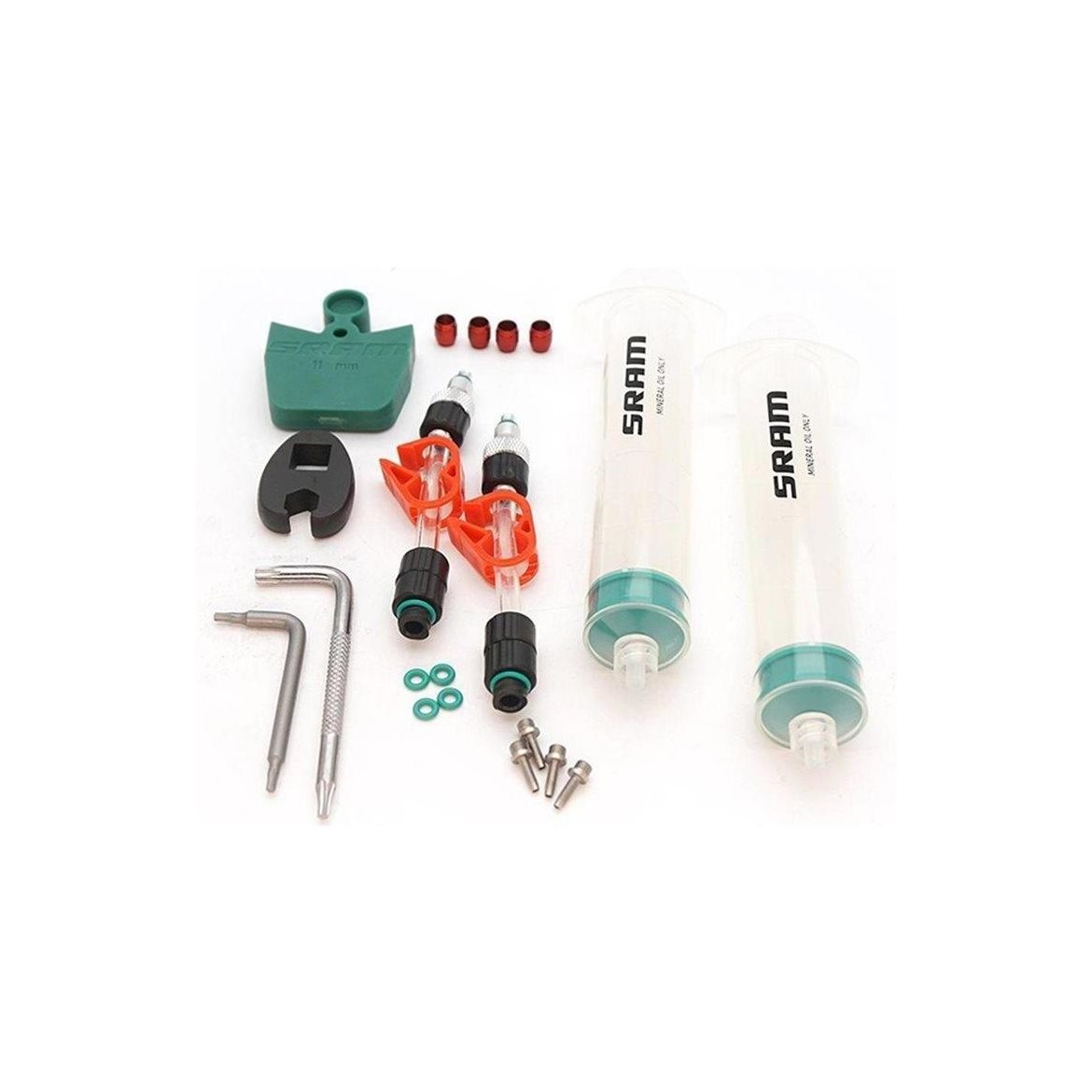 Med SRAM Standard Mineral Oil Bleed Kit får du alla verktyg du behöver för ett korrekt underhåll av dina bromsar, vilket säkerställer bästa möjliga prestanda och längre livslängd för din cykelutrustning. Använd detta kit för att säkra att dina bromsar alltid är i toppskick, för säkra och effektiva cykelturer oavsett terräng.