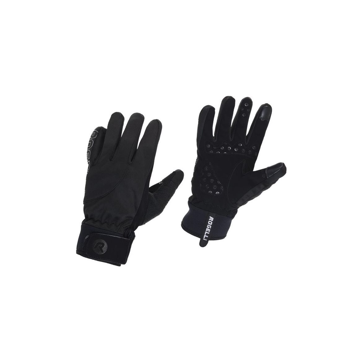 Vinterhanskarna Rogelli Storm Gloves är ett par vind- och vattentäta cykelhandskar med långa fingrar som är skapade för att ge dig ökad komfort och säkerställa ett bra grepp om styret i kyliga förhållanden. Handflatan är tillverkad i slitstark material och har detalger i GEL som säkerställer att du får helt rätt grepp om handtagen. Handsken är tillverkad i Softshell, ett flexibet och tåligt material som står emot lite lägre temperaturer och ser till att du inte fryser. Handsken har fingertoppar i material som medger att du kan styra din mobil utan att du behöver ta av dig handsken. Och tack vare dess flexibel manschett med förslutning via lätthanterlig kardborre säkerställs rätt passform varje gång.